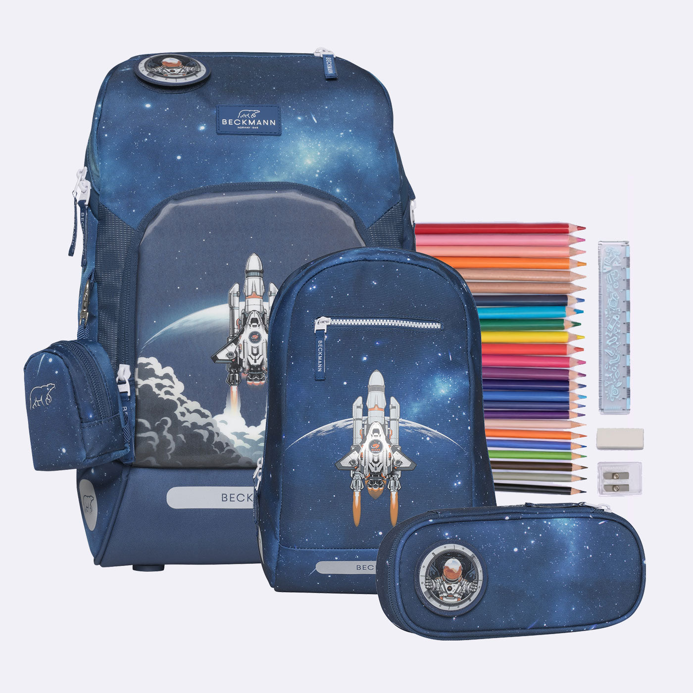 * I settet følger det med ettlagspennal i et annet motiv enn Space Mission så Innholdet kan flyttes over i det ovale pennalet.