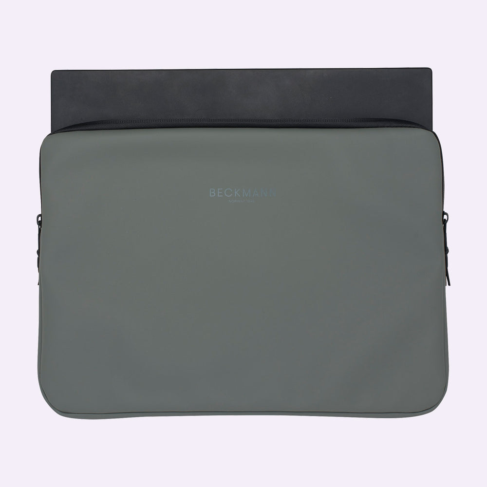 Laptophülle mit wasserabweisender Beschichtung (die Nähte & der Reißverschluss sind nicht wasserdicht, und das Produkt als Ganzes ist daher nicht wasserdicht). Innen besitzt die Hülle ein weiches Schutzfutter.